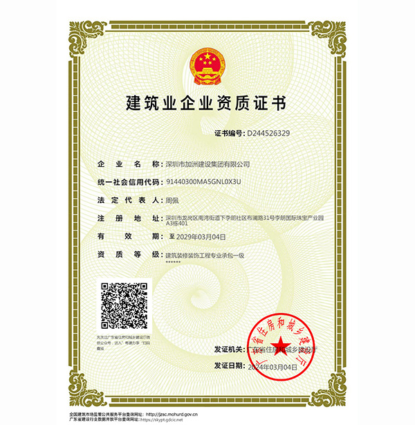 深圳市加洲建設集團有限公司,專注于深圳辦公室裝修、深圳辦公室設計、深圳寫字樓裝修、深圳寫字樓設計,是經國家住房與城鄉建設部批準的裝飾施工一級總承包,設計乙級資質的深圳辦公室裝修設計企業。公司作為精品建筑全程控制設計的實踐者,積極嘗試從項目策劃、建筑設計、室內設計、景觀設計、項目管理和施工監造等各個環節對項目營建的全過程提供設計控制和服務支持。